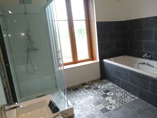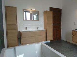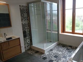 Restauration d'une salle de bain chez un particulier : - Baignoire - Douche - Sol - Murs - Plafonds - Meubles - Vasques
